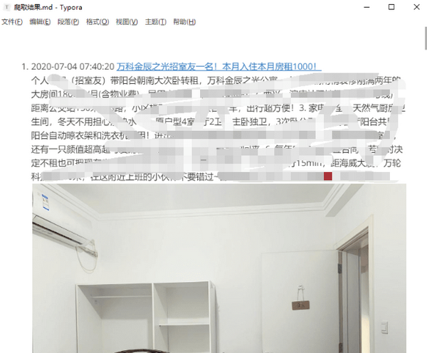 四、利用typora軟件打開爬取下來的MD文件即可看到房源信息。