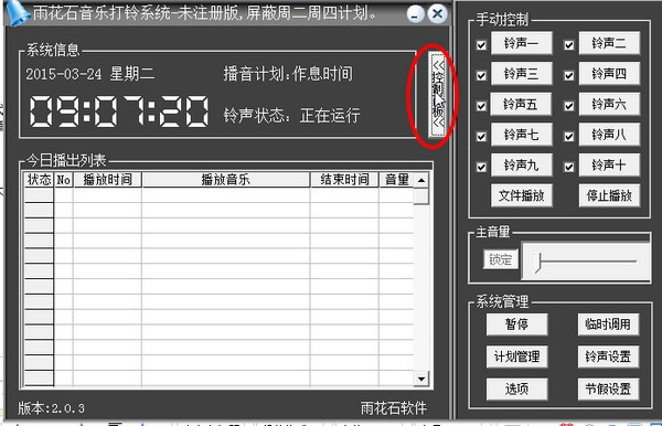雨花石音樂打鈴系統(tǒng)是一款支持自定義打鈴時間的系統(tǒng),定時播出功能強大,以周為單位,可以在任意天任意時間設定播放音樂鈴聲,支持自由編輯打鈴時所播放的歌曲,隨意控制播放音樂的時間,雖然說軟件界面有點不雅觀,但是用它來做備忘提示是非常不錯的選擇哦!