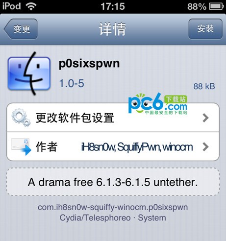 大家也可以按之前的方法通過安裝p0sixspwn越獄插件工具,不完美狀態(tài)直接安裝p0sixspwn補(bǔ)丁即可升為完美。是不是很方便呢,但是有很多果粉都在糾結(jié)搜索不到p0sixspwn 這個(gè)插件,所以pc6提供給大家,助大家完美越獄。