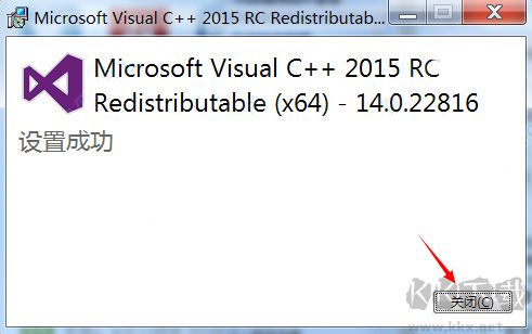 第三步:vc++2015運(yùn)行庫正在安裝,等待安裝完成后,點(diǎn)擊關(guān)閉,退出安裝向?qū)?如圖所示)。