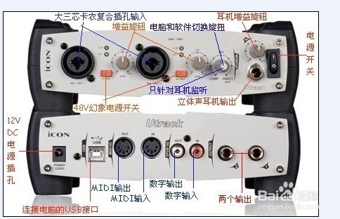 第二步:了解艾肯聲卡各個功能,如KKX小編分享的圖片所示: