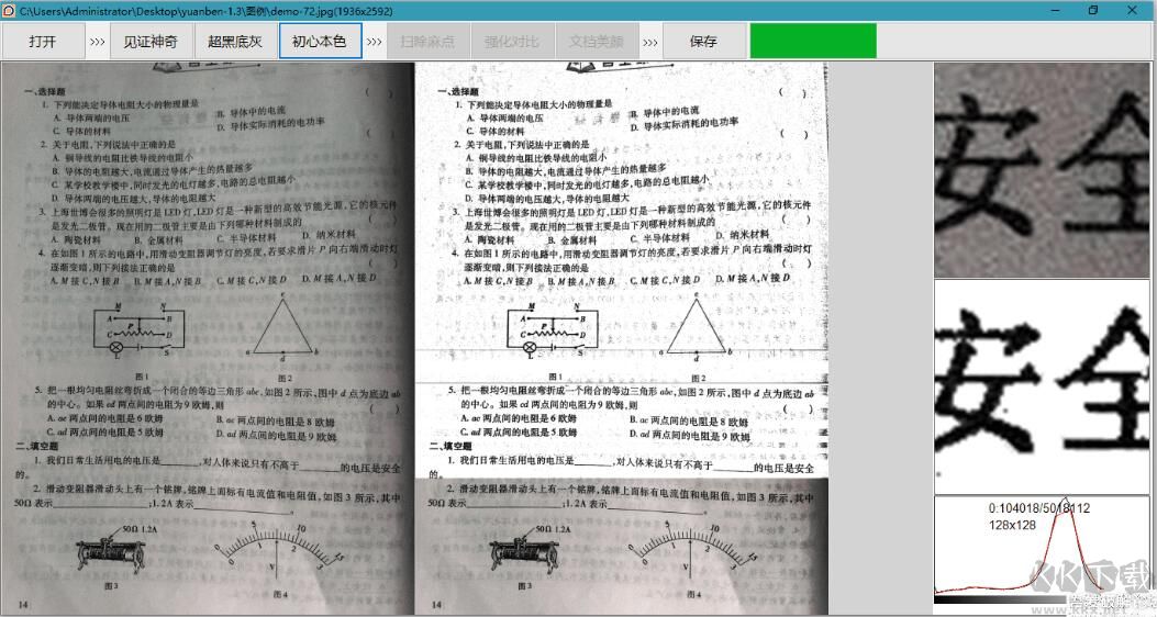 原本是一款(專(zhuān)業(yè)圖片去灰底增強(qiáng)軟件)它可以去掉一些掃描圖像拍攝照片中的陰影、底灰及各類(lèi)混淆圖片的雜質(zhì),便于獲得更好的更清晰的效果,解決了PS無(wú)法更好的處理此類(lèi)圖片的問(wèn)題。你不妨試試原本這款免費(fèi)的圖像處理工具。