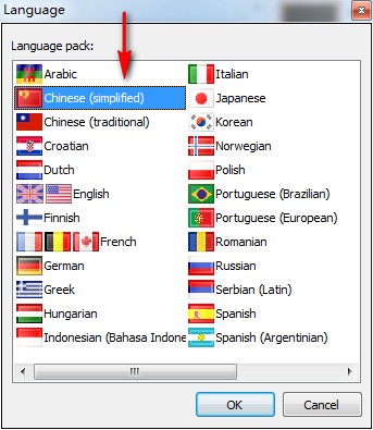 本軟件安裝時默認為英文界面,需要自己手動設(shè)置成中文,設(shè)置方法如下圖: