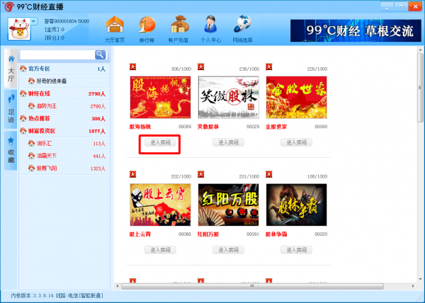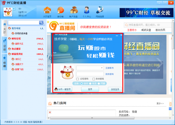 KKX小編為大家?guī)淼?9℃財(cái)經(jīng)直播平臺(tái)是一款專業(yè)的股票理財(cái)投資平臺(tái),是深圳華臣天拓網(wǎng)絡(luò)科技有限公司研發(fā)的一款財(cái)經(jīng)類視頻直播互動(dòng)平臺(tái)PC端軟件,99℃財(cái)經(jīng)直播平臺(tái)操作流暢,系統(tǒng)穩(wěn)定,實(shí)盤解析,高手在線視頻交流,高端數(shù)據(jù)指標(biāo)軟件,完全免費(fèi)的一款理財(cái)投資軟件,一教到底。
