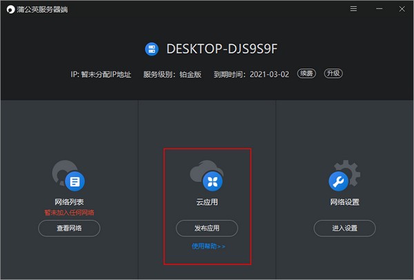 蒲公英服務(wù)器端主要用于在服務(wù)器端安裝使用,可以為企業(yè)提供智能組網(wǎng)整體解決方案的工具,登錄成功后可查看到服務(wù)端的主要三大功能:1.網(wǎng)絡(luò)列表,2.云應(yīng)用,3.網(wǎng)絡(luò)設(shè)置。和已有訪問(wèn)者客戶端相同均具可作為軟件成員加入到組網(wǎng)內(nèi)實(shí)現(xiàn)互聯(lián)互通,但整體界面為全新樣式,新增云應(yīng)用發(fā)布功能,快速創(chuàng)建組網(wǎng),支持發(fā)布云應(yīng)用,訪問(wèn)云應(yīng)用請(qǐng)安裝蒲公英訪問(wèn)端。