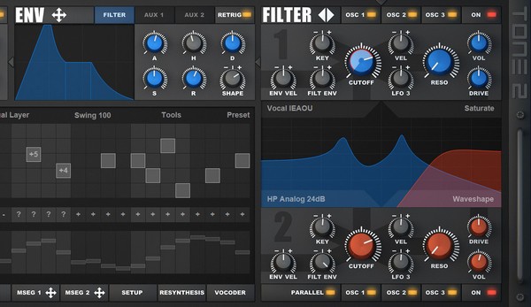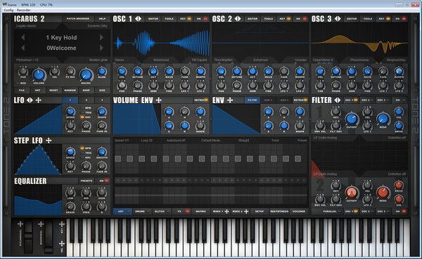 Icarus配置了合成器中最大的一個過濾器。這一款音頻模塊提供了很多強勁功能的,如鑼鼓聲編曲制作器、內(nèi)嵌的人聲伴奏視頻解碼器、重合成器、滑音編曲制作器、最先進wavetable-editor、強悍的震蕩器一部分、MSEGs等。
