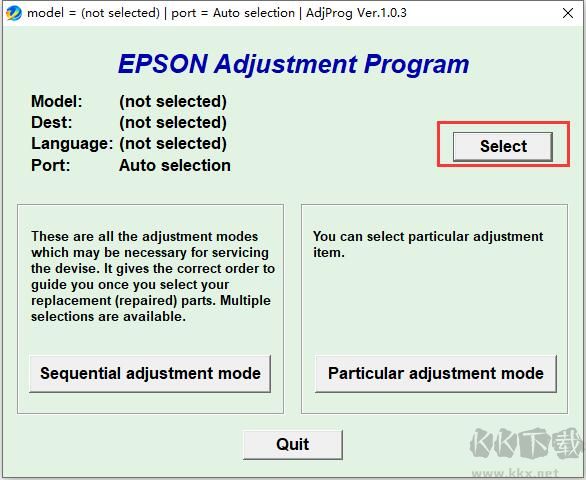 3、點擊[Particular adjustment mode]進入主菜單. 如下圖