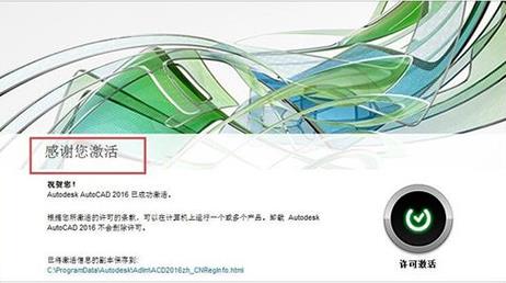 7、然后我們就可以發(fā)現(xiàn)激活成功了,出現(xiàn)這個界面說明您已經(jīng)激活A(yù)utoCAD2016了,點擊【完成】就可以打開CAD2016正常使用了。