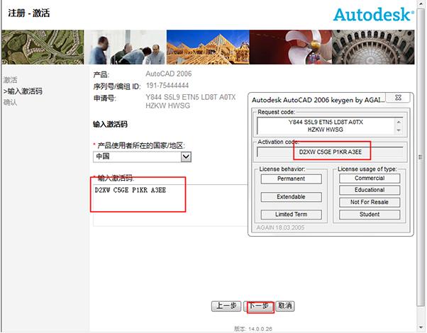 AutoCAD 2006激活碼: