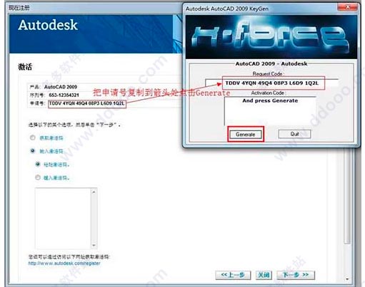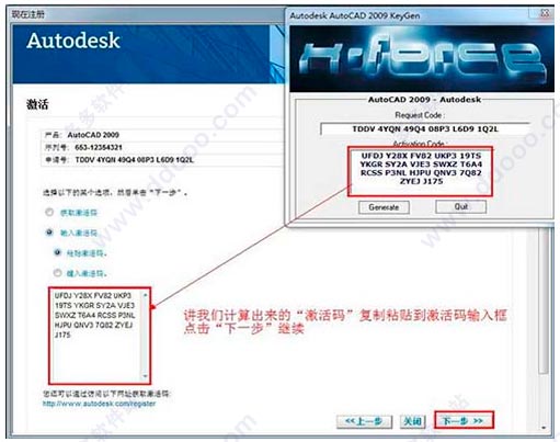 6、把激活碼復(fù)制到CAD2009的激活碼欄中點擊下一步,就可以激活了。
