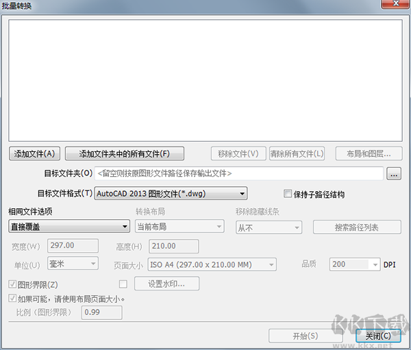 6、緊接著,我們選擇相依的目標(biāo)文件夾、同名文件處理、轉(zhuǎn)換布局、打印筆寬等參數(shù)進(jìn)行設(shè)置;