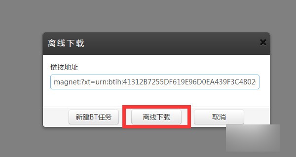 5、然后返回“離線下載”界面,粘貼對應(yīng)的磁 力鏈接地址,點擊“離線下載”按鈕即可下載對應(yīng)的磁 力資源。或者點擊“新建BT任務(wù)”按鈕通過BT種子下載對應(yīng)的資源文件。