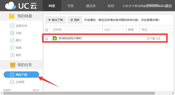 離線下載是服務(wù)器取代客戶到目的網(wǎng)站下載文件,并存放到UC網(wǎng)盤的一種下載工具。