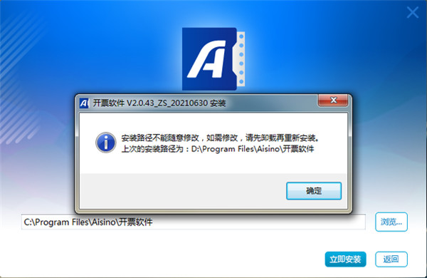 2、非首次安裝可以選擇直接點(diǎn)擊快速安裝,若用戶需要選擇路徑,則會(huì)提示保護(hù)數(shù)據(jù),不能隨意更改安裝路徑。