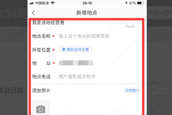 5、最后一步添加自己店鋪的信息(地點名稱、所在位置、地址電話等等),確認提交完成。