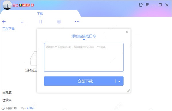 4、點(diǎn)擊+將會彈出下載的界面,輸入下載鏈接(包括BT任務(wù)),點(diǎn)擊立即下載即可