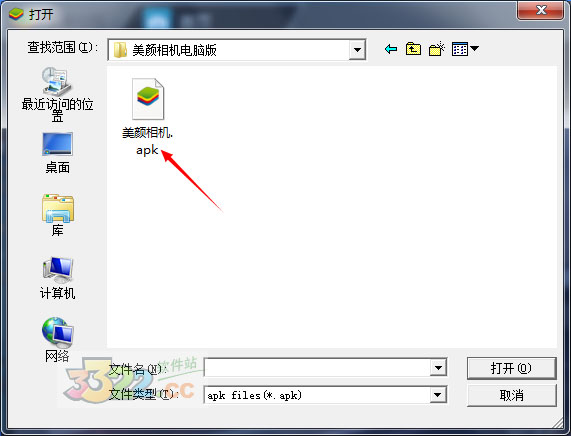 2、找到要添加的apk文件,選中后點(diǎn)擊“打開(kāi)”,軟件就會(huì)自動(dòng)進(jìn)行安裝