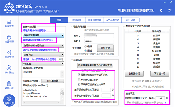 QQ群分類管理,淘客群和買家群可以分開管理,自定義單子發(fā)送到哪個分類群,讓自己的單子,既可以發(fā)送到淘客群,也可以發(fā)送到買家群,不帶上淘客,傭金等字眼。還可以自定義發(fā)送模版。