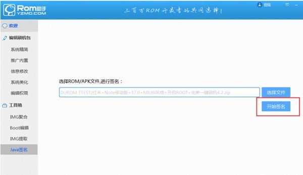 選擇刷機包或apk文件后,點擊開始簽名