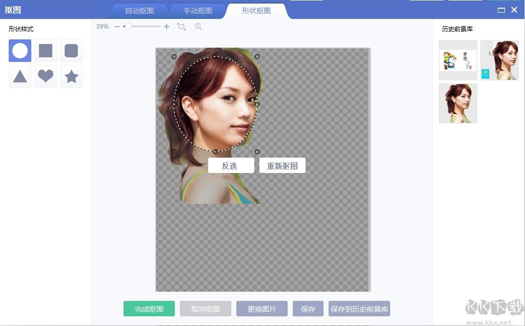 7、形狀摳圖就是用幾個預設的形狀,然后在圖片上摳出你要的圖片。