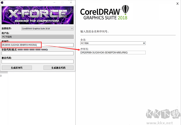 3、在剛剛在安裝時注冊的用戶名,輸入到注冊機中,然后在注冊機的左下方選擇生成序列號,生成的序列號寫到軟件注冊的頁面,然后選擇下一步。