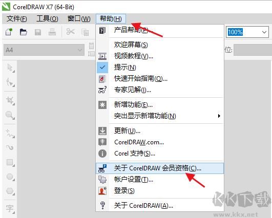 6、接下來(lái)打開(kāi)CorelDRAW X7在左側(cè)的導(dǎo)航欄中,點(diǎn)擊“幫助”——點(diǎn)擊“關(guān)于CorelDraw會(huì)員資格”,
