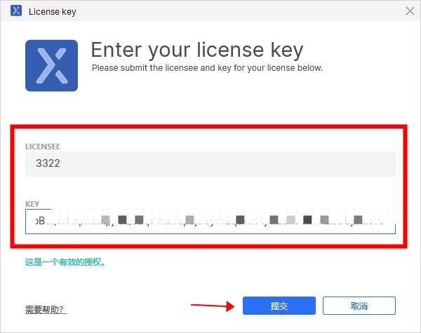 8、將激活碼輸入對應的位置,點擊提交即可完成版本激活;
