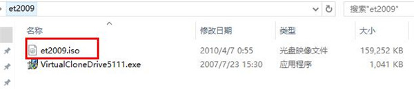 1、解壓壓縮包,然后點擊“et2009”,注意這里不要去解壓,確保電腦有安裝虛擬光驅(qū)軟件,如:DAEMON Tools Lite,然后就直接雙擊打開iso鏡像文件即可。