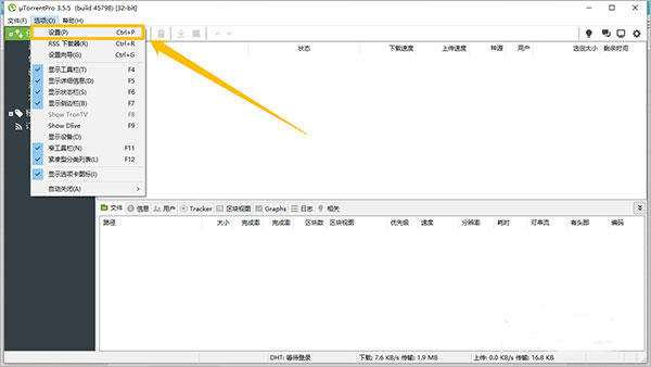 3、在“uTorrent Pro”主界面中,點擊左上方的“選項”按鈕;