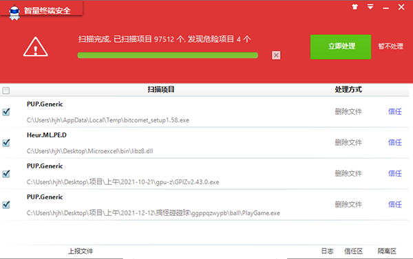 3、過(guò)了一段時(shí)間終于掃描完了,點(diǎn)擊立即處理就可以了;