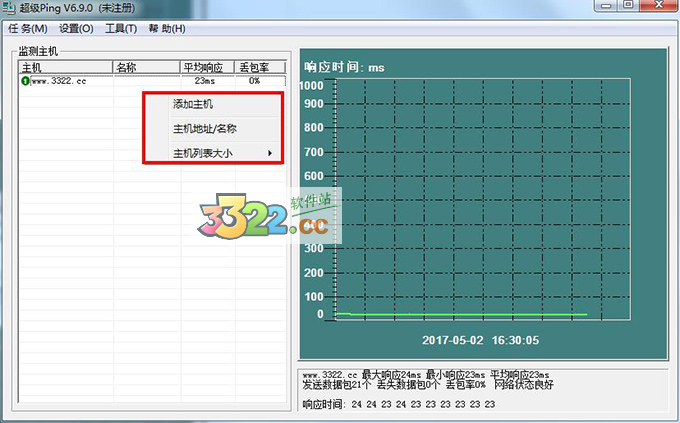 在主機(jī)列表空白處點擊右鍵,彈出右鍵彈出菜單,如下圖: