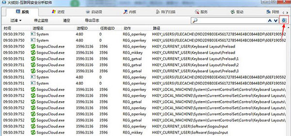 3、與著位的“ProcessMonitor”專(zhuān)用工具類(lèi)似,火絨劍帶來(lái)了方便快捷的監(jiān)管信息過(guò)濾功能。不一樣的是,過(guò)濾功能會(huì)自動(dòng)過(guò)濾很多無(wú)意義的信息,使您用起來(lái)比較容易。