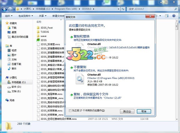 1、回到3d3s9.0的安裝包,打開“3D3S9.0cr”文件夾,將里面的所有文件全部復(fù)制到3d3s9.0的安裝目錄中,默認(rèn)路徑為C:\Program Files (x86)\3D3S9.0,如下圖所示: