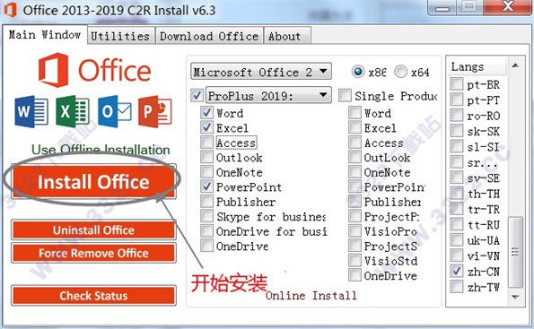 6、最后只需點(diǎn)擊install office就可以正式開始安裝了,這步比較慢需要耐心等待,如kkx分享的圖片:
