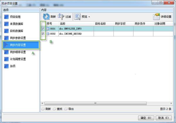 六、轉(zhuǎn)換到"同歩具體內(nèi)容設(shè)置"菜單欄,挑選必須同步數(shù)據(jù)庫表;
