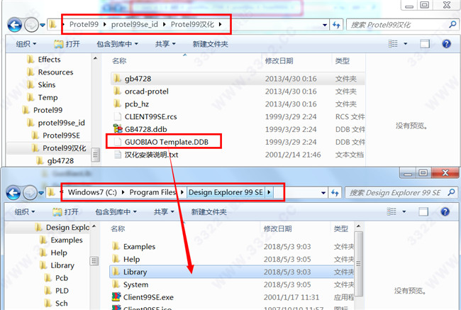 4、將“GUOBIAO Template.DDB”文件復(fù)制到“C:\Program Files\Design Explorer 99 SE”目錄下,將文件的只讀屬性去掉。