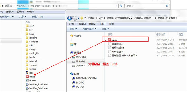 12、完成安裝后將破解補丁解壓出來將其中的“e.exe”補丁復(fù)制到上一步打開的軟件安裝位置,在出現(xiàn)的提示中選擇復(fù)制和替換這一項即可輕松的完成破解,如kkx分享的圖片: