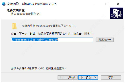 2、雙擊uiso9_cn.exe運行安裝,進入安裝路徑,默認安裝路徑【C:\Program Files (x86)\UltraISO】,可自由選擇路徑,如下圖kkx小編分享的安裝截圖: