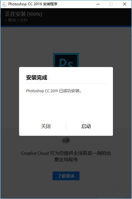 3、耐心等兩分鐘,讓其上方進(jìn)度條達(dá)到100%就可以安裝安裝成功的字樣。