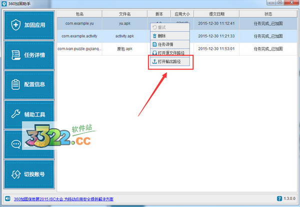 360加固助手是一款奇虎360安全衛(wèi)士公司推出的一款安全加固軟件,擁有涵蓋應(yīng)用加固、漏洞掃描、文件加密、盜版監(jiān)控、崩潰日志、安全組件等功能,開(kāi)發(fā)者只需打開(kāi)此軟件,一鍵上傳APK,即可自動(dòng)完成應(yīng)用的加固、簽名、多渠道打包工作。360加固助手為移動(dòng)應(yīng)用提供專(zhuān)業(yè)安全的保護(hù),可防止應(yīng)用被逆向分析、反編譯、二次打包,防止嵌入各類(lèi)病毒、廣告等惡意代碼,從源頭保護(hù)數(shù)據(jù)安全和開(kāi)發(fā)者利益。