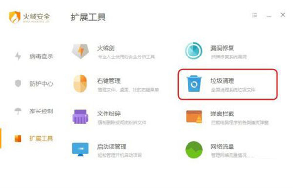 3、第三步,進(jìn)入火絨安全擴(kuò)展工具一欄,如下圖kkx分享的圖片所示: