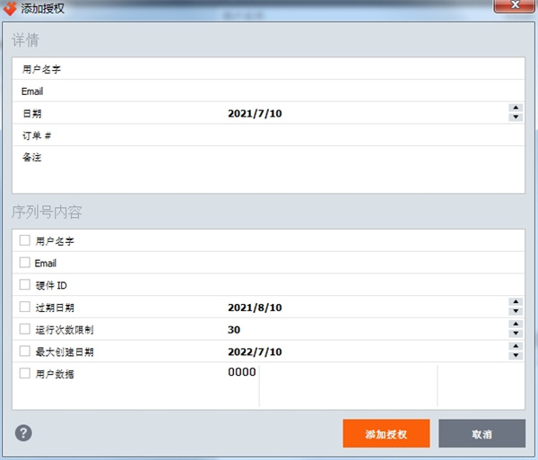 受權(quán)功能幫助大家限定完全免費(fèi)升級(jí)周期時(shí)間、設(shè)定序列號(hào)的有效期限、預(yù)防在沒(méi)有鍵入序列號(hào)的情形下執(zhí)行代碼,同時(shí)提供很多別的功能。還可以阻攔一切序列號(hào),一個(gè)新的遭受保護(hù)文件不容易接納此序列號(hào)。