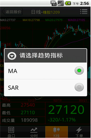 進(jìn)行MA、SAR指標(biāo)選擇