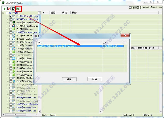 4、點(diǎn)擊網(wǎng)卡選擇圖標(biāo),可選擇自己的網(wǎng)卡,如kkx分享的圖片: