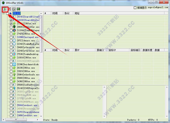 6、之后,回到程序點(diǎn)擊界面上的“>”圖標(biāo)即可開(kāi)啟監(jiān)聽(tīng),如kkx分享的圖片: