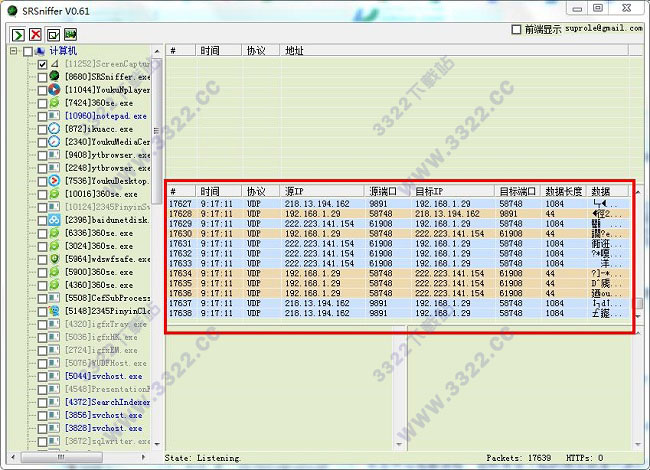 2、支持監(jiān)聽(tīng)指定進(jìn)程,使用2種顏色的數(shù)據(jù)包列表讓你更加直觀了解網(wǎng)絡(luò)情況