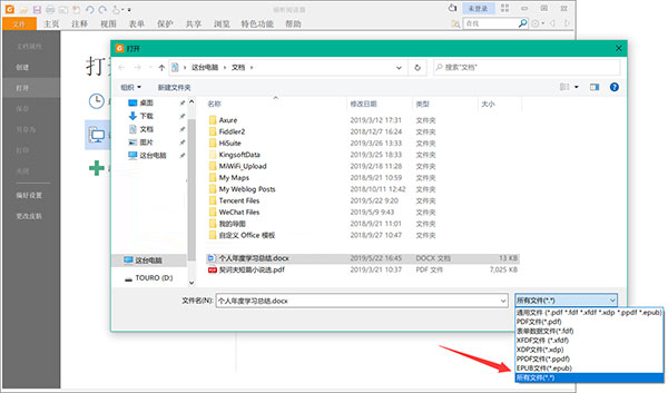 2、在格式范圍里選擇“所有文件”,彈出包括Word文檔在內(nèi)的所有文件,點(diǎn)選需要轉(zhuǎn)換成PDF的Word文檔,之后點(diǎn)擊“打開”。