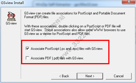 6、這里提示關(guān)聯(lián)PostScript和PDF。想默認(rèn)關(guān)聯(lián)PDF的,可以選中下面那一項(xiàng),如圖所示: