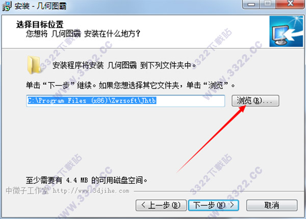3、選擇安裝位置,點擊瀏覽更換安裝目錄,如kkx分享的截圖: