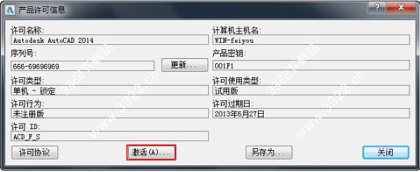 5、出現(xiàn)“產(chǎn)品許可信息”對話框,點擊“激活”選項